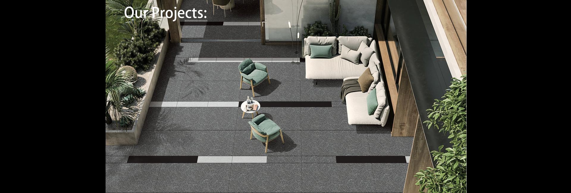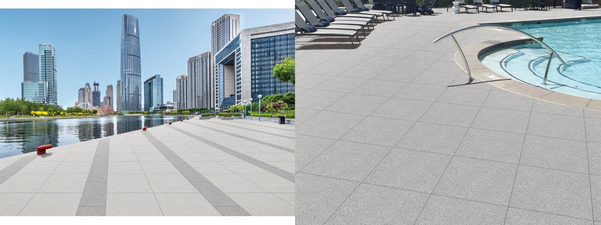 床材屋外スクエアグレー敷石タイル滑り止めガーデンヴィラ中庭磁器タイル